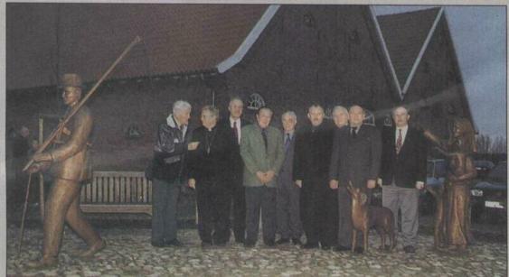 Erinnerungsfoto am historischen Denkmal vor Krulls Hus: Dr. Heinrich Book, Bischof Ricken, Bürgermeister Heinrich Kreutzjans und die Mitglieder des Denkmalausschusses Hans Pohlabeln, Rudolf Wilken, Hümmling-Feriendorf, Ausschußvorsitzender Ratsherr Theo Book, Franz Grote, Heimatring, Heinrich Wingbermühlen und Rudolf Schwarte, Hans-Meyer-Wellmann-Stiftung (von links). Schwarte-Foto Bischof David Rickens Vorfahren waren auf dem Hümmling zu Hause Von Wyoming über Rom nach Lorup Aus dem Emsland-Kurier vom 17.12.2000 Lorup (rs) - David Ricken, als Bischof "Koadjutor" der Diözese Cheyenne im amerikanischen Bundesstaat Wyoming, hat sein Versprechen eingelöst, das er seinen Hümmlinger Verwandten bei seiner Bischofsweihe am Dreikönigstag im Vatikan gab. Anlässlich der Silberhochzeit seines Großcousins verbrachte er mehrere Tage im Hümmling. Die Großeltern des 48-jährigen Bischofs stammen aus den Gemeinden Lorup und Breddenberg, und über 20 Verwandte waren im Januar dieses Jahres zur Bischofsweihe nach Rom gefahren. Von den 18 Geschwistern seines Großvaters lebt in Lorup noch seine jüngste Großtante Thekla Schmedthans, geborene Rieken. Wilhelm Rieken, 1893 in Lorup geboren und 1911 in die USA ausgewandert, heiratete dort die aus Breddenberg stammende Christine Hanekamp. Der Großvater des heutigen Bischofs war seiner deutschen Heimat und seiner Familiengeschichte eng verbunden. Nach dem Krieg wurden die Kontakte zu Geschwistern, Neffen und Großneffen in Deutschland intensiv durch Besuche, Briefe und Telefonate gepflegt. Bischof David Ricken - der Familienname wurde im Laufe der Jahre an die amerikanische Schreibweise angepasst - wurde 1980 zum Priester geweiht und studierte Kirchenrecht sowie katholische Theologie an der Gregorianischen Universität in Rom. Auf den unterschiedlichsten Ebenen im Vatikan und in den USA übte er administrative Funktionen aus. Neben dem Dankgottesdienst anlässlich des 25. Ehejubiläums seines Großcousins in Vrees feierte Bischof Ricken in der Loruper Pfarrkirche St. Marien in Konzelebration mit Pfarrer Hermann Rohling und Pfarrer i. R. Norbert Falke ein Pontifikalamt. Am Nachmittag hatte die Loruper Verwandtschaft zu einem Treffen in Krulls Hus eingeladen. Das Denkmal vor diesem Kulturzentrum soll auch an die Menschen erinnern, die im Laufe der letzten 100 Jahre das Hümmlingdorf verließen, um in Übersee eine neue Heimat zu finden. Der Name des Bischofs ist in die Steine aufgenommen, die unter anderem die großzügige Unterstützung von Loruper Auswandererfamilien in den USA bei der Realisierung des Denkmals dokumentieren. |