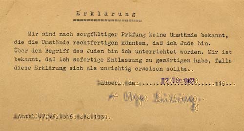 "...keine Umstände bekannt ..., daß ich Jude bin. Mir ist