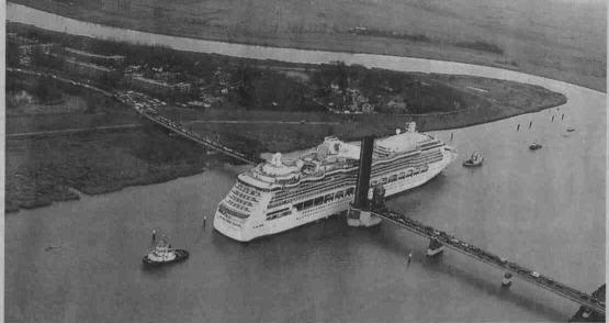 Ems-Sperrung an der Brücke Weener. Ein Meyer-Schiff kommt die Ems herauf, und der klappbare Teil der Eisenbahnbrücke bei Weener ist im Weg. Deshalb wird es am 19. Januar ausgebaut. Die Ems ist deswegen auf diesem Abschnitt zwischen 12 und 16 Uhr gesperrt. Wenn die "Radiance of the Seas" wie geplant fährt, wird das Brückenstück am 20. Januar wieder eingebaut. Auch hier liegt die voraussichtliche Sperrzeit zwischen 12 und 16 Uhr, teilt das Wasser-und Schiffahrtsamt mit. (OZ v. 8.1.2001) |